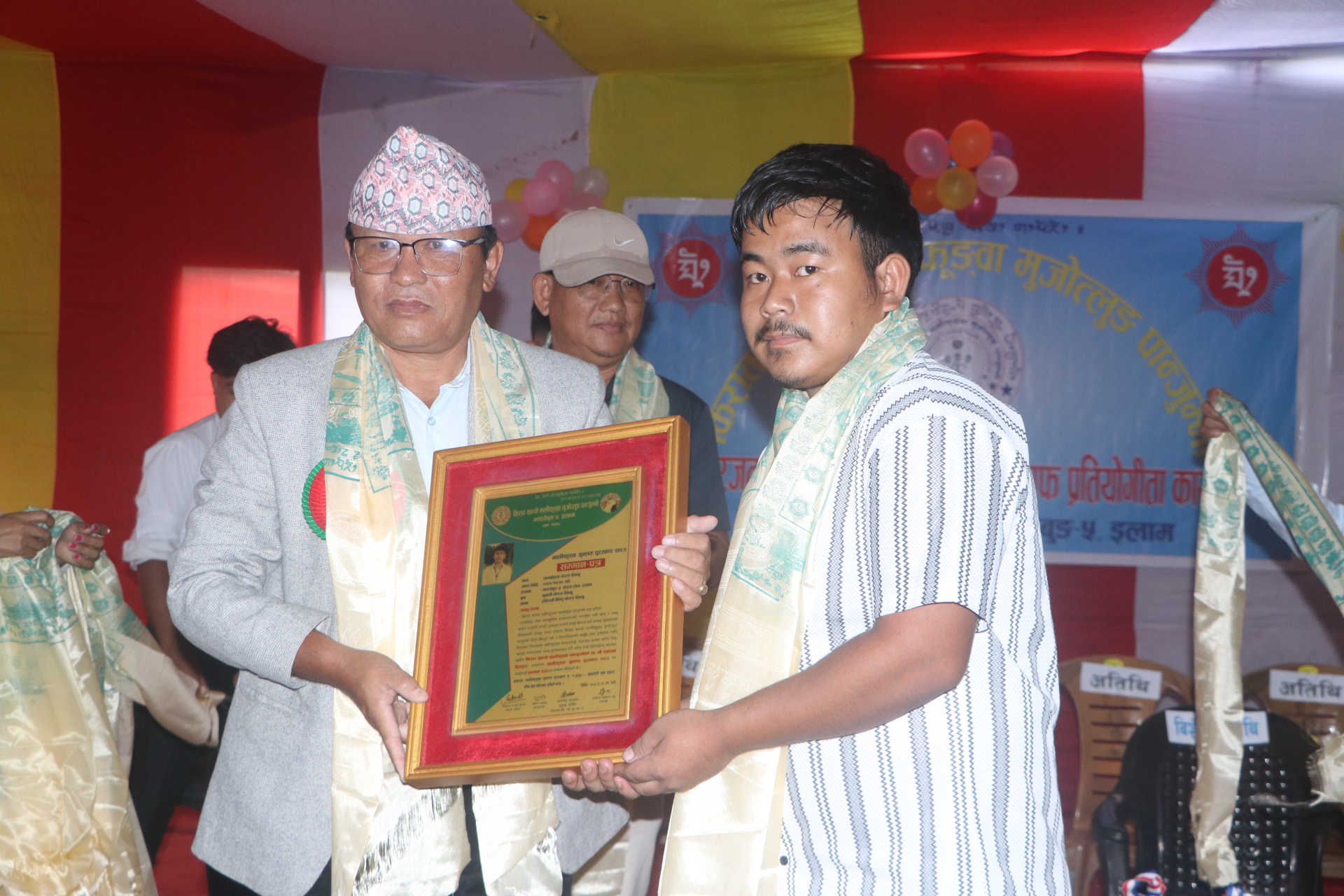 यसैगरी स्थापना दिवसमा नालिफुङ्वामा रहेर महत्वपूर्ण योगदान गर्ने दुई जनालाई नालिफुङ्वा जुझारु पुरस्कार २०८२ प्रदान गरिएको छ । पुरस्कृत हुनेमा पुरुषतर्फ किरात साम्यो नालीफुङवा माङसेबुङ पान्जुम्भो सहसचिव तान्छोहाङ केरुङ र महिलातर्फबाट थुम पान्जुम्भो सदस्य आश्ना याम्फु रहेका छन् । उनीहरुलाई जनही नगद १ हजार ५ सय २५ सहित सम्मानपत्र प्रदान गरेका थिए ।