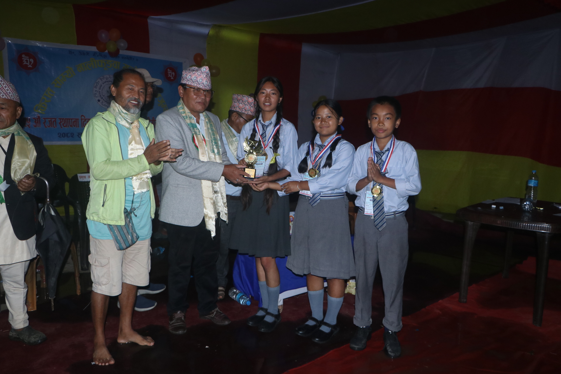 सोमबार किरात धर्मावलम्बीहरुको आस्थाको केन्द्र धार्मिक स्थल माङसेबुङमा -५ स्थित सामुदायिक भवनमा पान्जुम्भोले नालिफुङ्वा जुझारु पुरस्कार २०८२ वितरण तथा अन्तरविद्यालय हाजिरीजवाफ प्रतियोगिता कार्यक्रमको आयोजना गरि रजत बर्ष मनाएको हो ।
